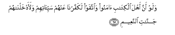 65. Walaw anna ahla alkitabi amanoo waittaqaw lakaffarna AAanhum sayyi-atihim walaadkhalnahum jannati alnnaAAeemi