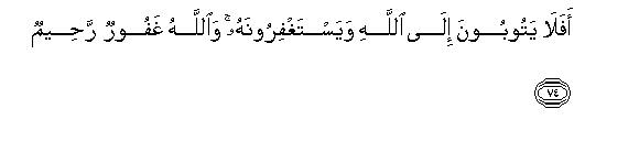 74. Afala yatooboona ila Allahi wayastaghfiroonahu waAllahu ghafoorun raheemun
