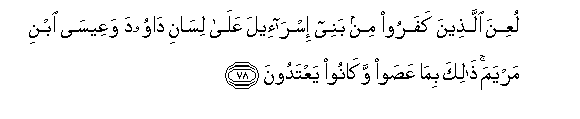 78. LuAAina allatheena kafaroo min banee isra-eela AAala lisani dawooda waAAeesa ibni maryama thalika bima AAasaw wakanoo yaAAtadoona