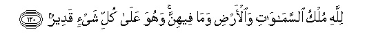 120. Lillahi mulku alssamawati waal-ardi wama feehinna wahuwa AAala kulli shay-in qadeerun