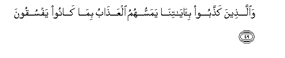 49. Waallatheena kaththaboo bi-ayatina yamassuhumu alAAathabu bima kanoo yafsuqoona