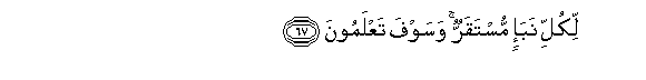 67. Likulli naba-in mustaqarrun wasawfa taAAlamoona