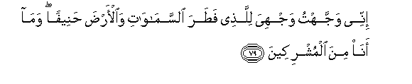 79. Innee wajjahtu wajhiya lillathee fatara alssamawati waal-arda haneefan wama ana mina almushrikeena