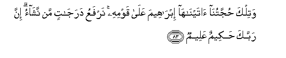 83. Watilka hujjatuna ataynaha ibraheema AAala qawmihi narfaAAu darajatin man nashao inna rabbaka hakeemun AAaleemun