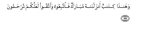 155. Wahatha kitabun anzalnahu mubarakun faittabiAAoohu waittaqoo laAAallakum turhamoona