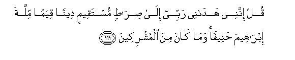161. Qul innanee hadanee rabbee ila siratin mustaqeemin deenan qiyaman millata ibraheema haneefan wama kana mina almushrikeena
