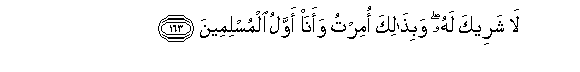 163. La shareeka lahu wabithalika omirtu waana awwalu almuslimeena