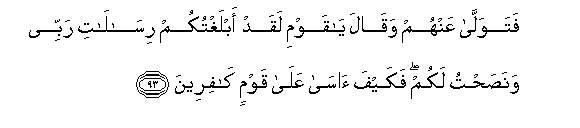 93. Fatawalla AAanhum waqala ya qawmi laqad ablaghtukum risalati rabbee wanasahtu lakum fakayfa asa AAala qawmin kafireena