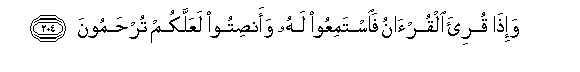 204. Wa-itha quri-a alqur-anu faistamiAAoo lahu waansitoo laAAallakum turhamoona