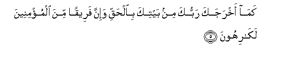 5. Kama akhrajaka rabbuka min baytika bialhaqqi wa-inna fareeqan mina almu/mineena lakarihoona