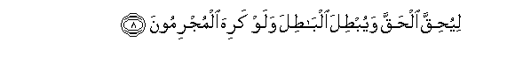 8. Liyuhiqqa alhaqqa wayubtila albatila walaw kariha almujrimoona