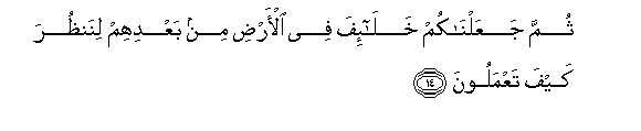 14. Thumma jaAAalnakum khala-ifa fee al-ardi min baAAdihim linanthura kayfa taAAmaloona