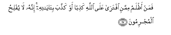 17. Faman athlamu mimmani iftara AAala Allahi kathiban aw kaththaba bi-ayatihi innahu la yuflihu almujrimoona