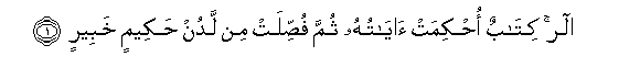 1. Alif-lam-ra kitabun ohkimat ayatuhu thumma fussilat min ladun hakeemin khabeerin