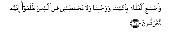 37. WaisnaAAi alfulka bi-aAAyunina wawahyina wala tukhatibnee fee allatheena thalamoo innahum mughraqoona