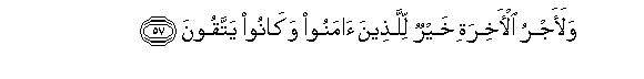 57. Walaajru al-akhirati khayrun lillatheena amanoo wakanoo yattaqoona