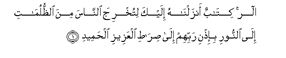 1. Alif-lam-ra kitabun anzalnahu ilayka litukhrija alnnasa mina alththulumati ila alnnoori bi-ithni rabbihim ila sirati alAAazeezi alhameedi