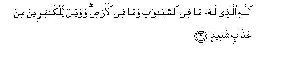 2. Allahi allathee lahu ma fee alssamawati wama fee al-ardi wawaylun lilkafireena min AAathabin shadeedin