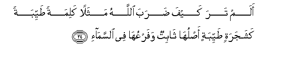 24. Alam tara kayfa daraba Allahu mathalan kalimatan tayyibatan kashajaratin tayyibatin asluha thabitun wafarAAuha fee alssama/-i