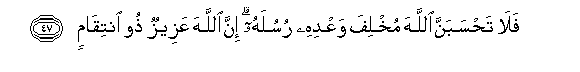 47. Fala tahsabanna Allaha mukhlifa waAAdihi rusulahu inna Allaha AAazeezun thoo intiqamin