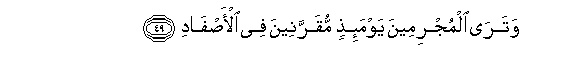 49. Watara almujrimeena yawma-ithin muqarraneena fee al-asfadi