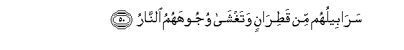 50. Sarabeeluhum min qatranin wataghsha wujoohahumu alnnaru