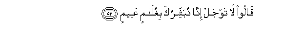 53. Qaloo la tawjal inna nubashshiruka bighulamin AAaleemin