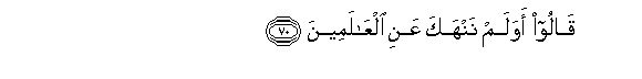 70. Qaloo awa lam nanhaka AAani alAAalameena
