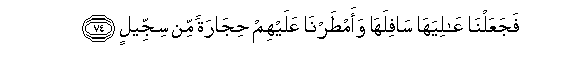 74. FajaAAalna AAaliyaha safilaha waamtarna AAalayhim hijaratan min sijjeelin