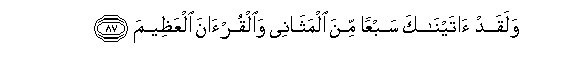 87. Walaqad ataynaka sabAAan mina almathanee waalqur-ana alAAatheema