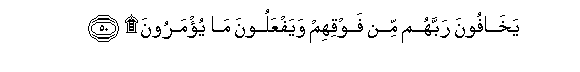 50. Yakhafoona rabbahum min fawqihim wayafAAaloona ma yu/maroona