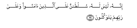 99. Innahu laysa lahu sultanun AAala allatheena amanoo waAAala rabbihim yatawakkaloona