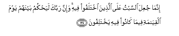 124. Innama juAAila alssabtu AAala allatheena ikhtalafoo feehi wa-inna rabbaka layahkumu baynahum yawma alqiyamati feema kanoo feehi yakhtalifoona