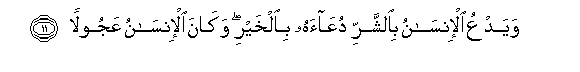 11. WayadAAu al-insanu bialshsharri duAAaahu bialkhayri wakana al-insanu AAajoolan