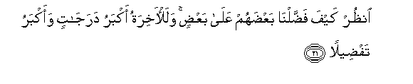 21. Onthur kayfa faddalna baAAdahum AAala baAAdin walal-akhiratu akbaru darajatin waakbaru tafdeelan