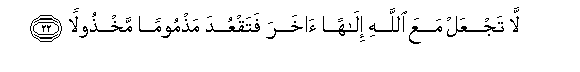 22. La tajAAal maAAa Allahi ilahan akhara fataqAAuda mathmooman makhthoolan