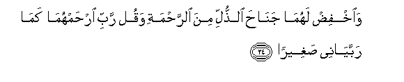 24. Waikhfid lahuma janaha alththulli mina alrrahmati waqul rabbi irhamhuma kama rabbayanee sagheeran
