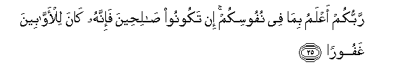 25. Rabbukum aAAlamu bima fee nufoosikum in takoonoo saliheena fa-innahu kana lil-awwabeena ghafooran