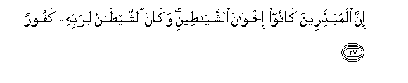 27. Inna almubaththireena kanoo ikhwana alshshayateeni wakana alshshaytanu lirabbihi kafooran