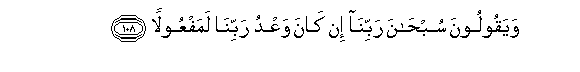 108. Wayaqooloona subhana rabbina in kana waAAdu rabbina lamafAAoolan