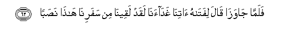 62. Falamma jawaza qala lifatahu atina ghadaana laqad laqeena min safarina hatha nasaban