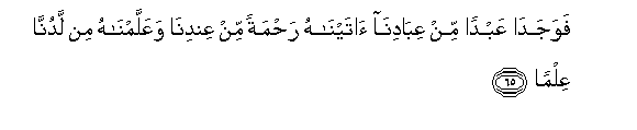 65. Fawajada AAabdan min AAibadina ataynahu rahmatan min AAindina waAAallamnahu min ladunna AAilman