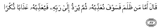 87. Qala amma man thalama fasawfa nuAAaththibuhu thumma yuraddu ila rabbihi fayuAAaththibuhu AAathaban nukran