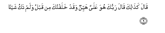 9. Qala kathalika qala rabbuka huwa AAalayya hayyinun waqad khalaqtuka min qablu walam taku shay-an