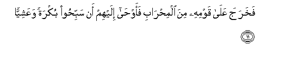 11. Fakharaja AAala qawmihi mina almihrabi faawha ilayhim an sabbihoo bukratan waAAashiyyan