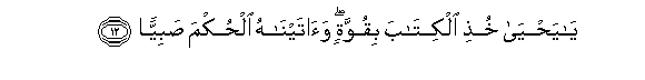 12. Ya yahya khuthi alkitaba biquwwatin waataynahu alhukma sabiyyan