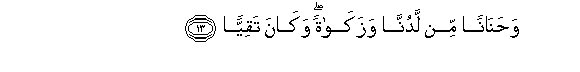 13. Wahananan min ladunna wazakatan wakana taqiyyan