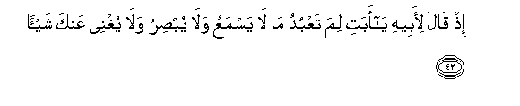 42. Ith qala li-abeehi ya abati lima taAAbudu ma la yasmaAAu wala yubsiru wala yughnee AAanka shay-an