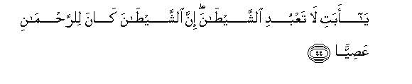 44. Ya abati la taAAbudi alshshaytana inna alshshaytana kana lilrrahmani AAasiyyan