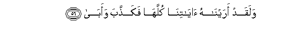 56. Walaqad araynahu ayatina kullaha fakaththaba waaba